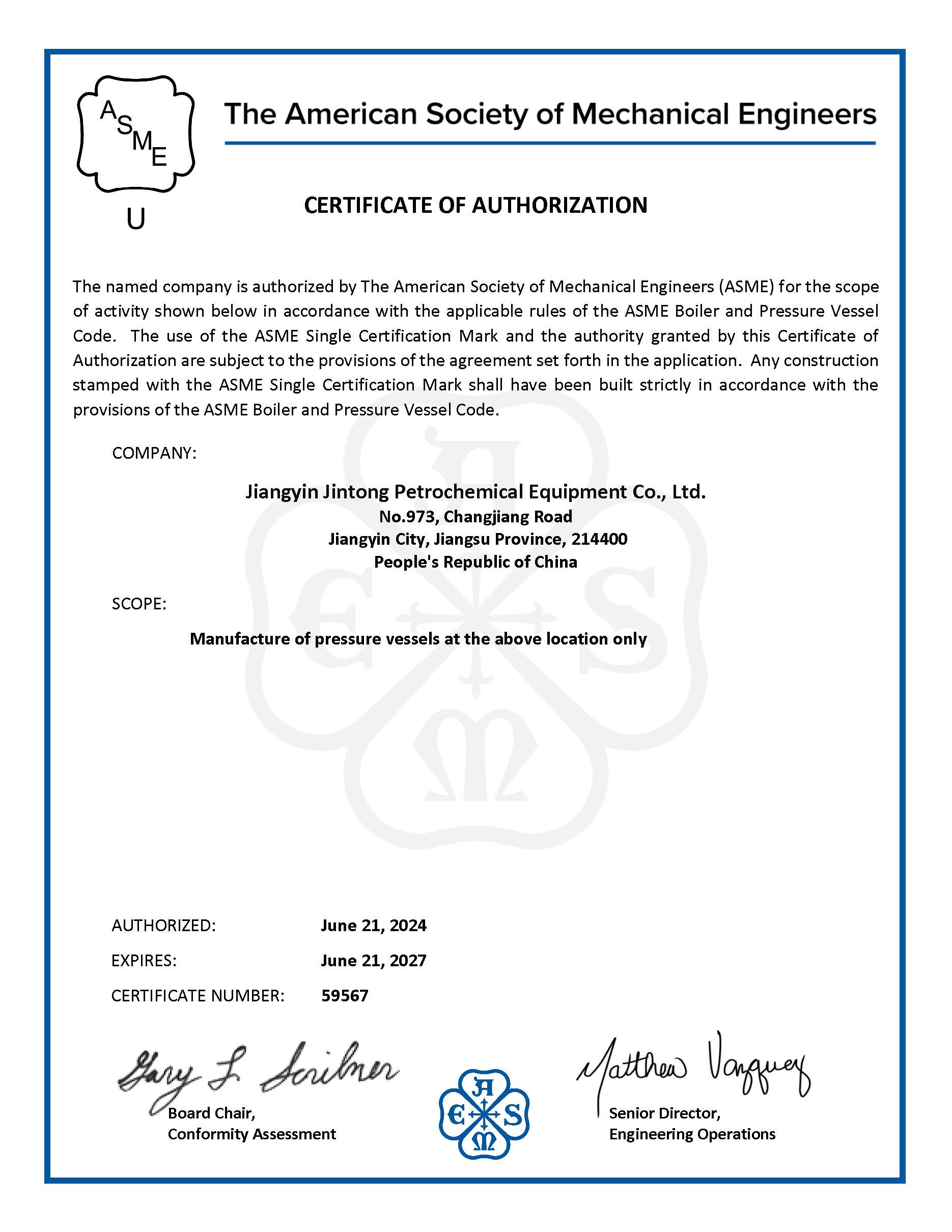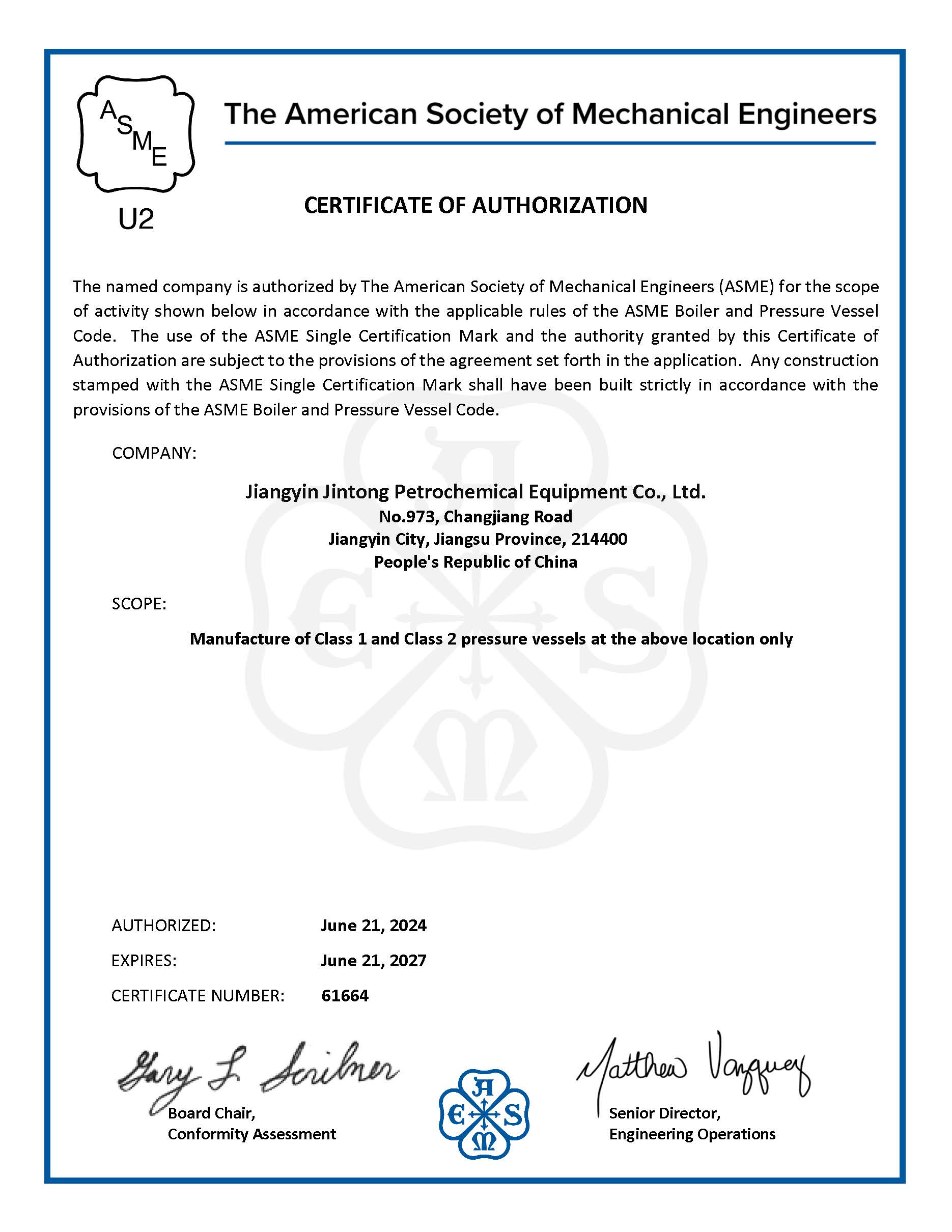 企業(yè)資信等級(jí)為AAA,是江蘇省國(guó)家高新技術(shù)企業(yè)。公司自1996年起開始按ISO9000要求建立質(zhì)量管理體系,于1998年獲得質(zhì)量管理體系認(rèn)證。并具有特種設(shè)備壓力容器規(guī)則設(shè)計(jì)許可資質(zhì)、大型高壓容器A1和超高壓容器A6制造許可資質(zhì),壓力管道元件A、B級(jí)制造資質(zhì),江蘇省節(jié)能型熱交換成套裝備工程技術(shù)研究中心、無錫市金屬管道配件工程技術(shù)研究中心。